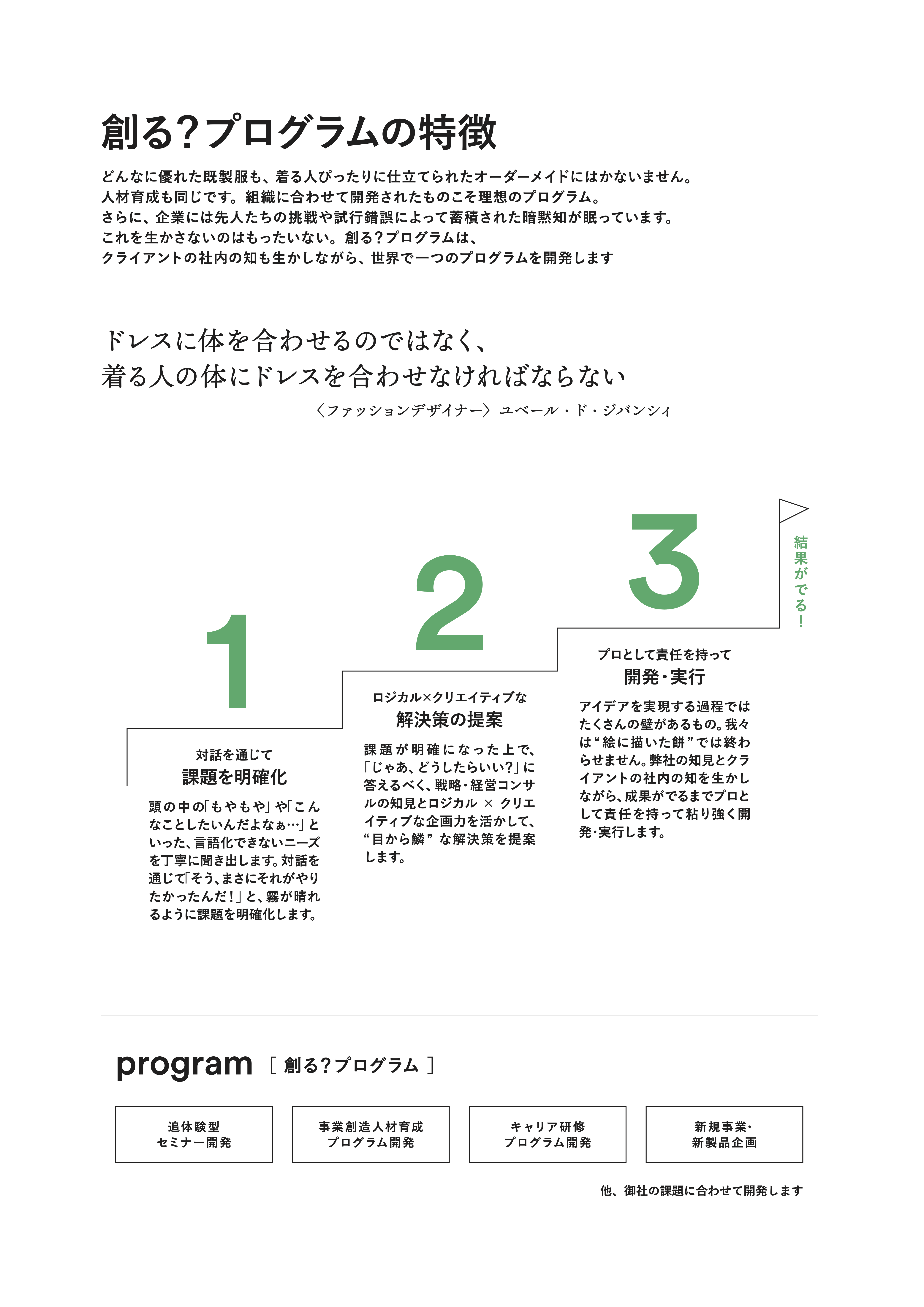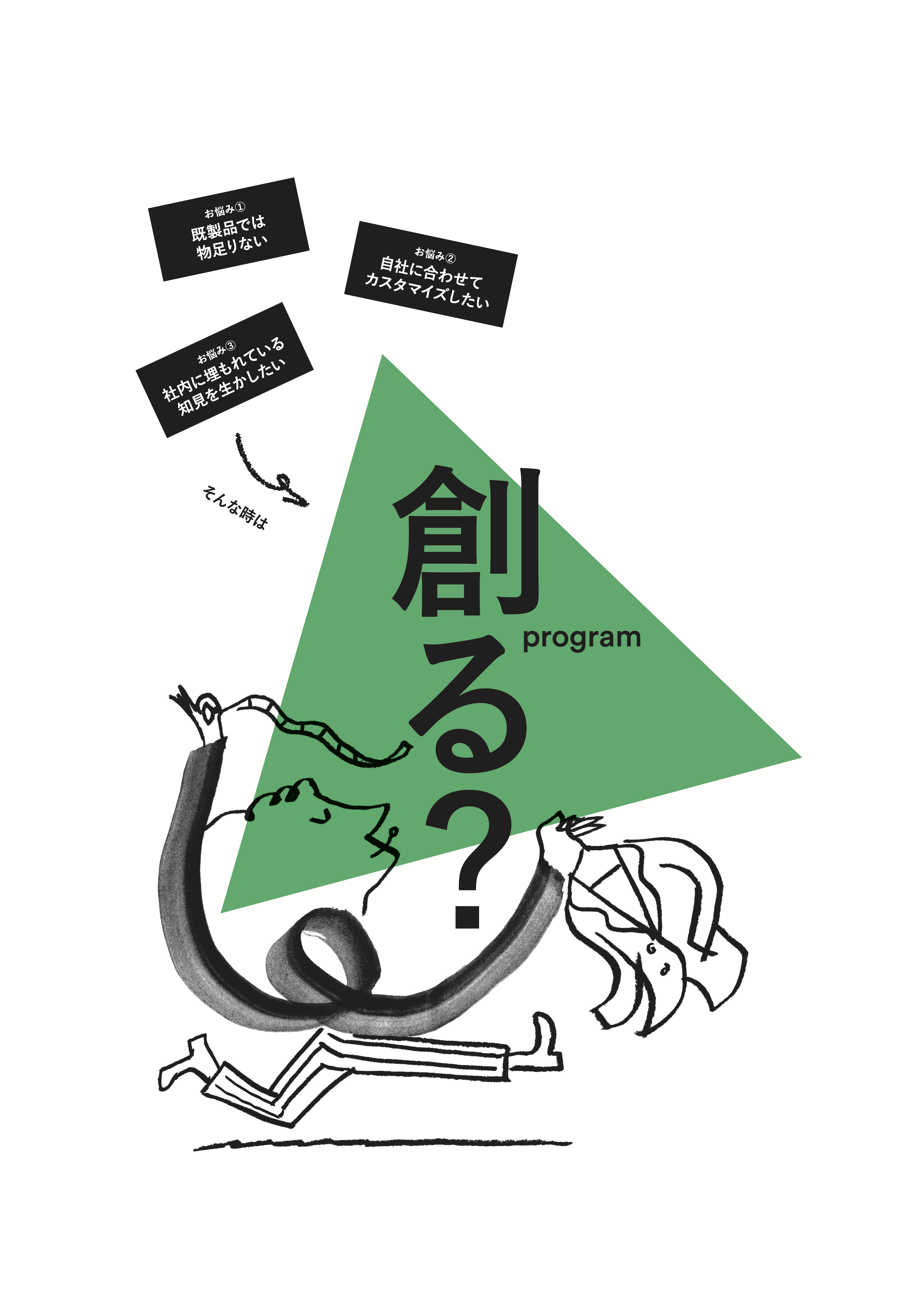 御社にぴったりのプログラムを創りませんか?という気持ちを込めて名付けた「創る?」プログラムでは、