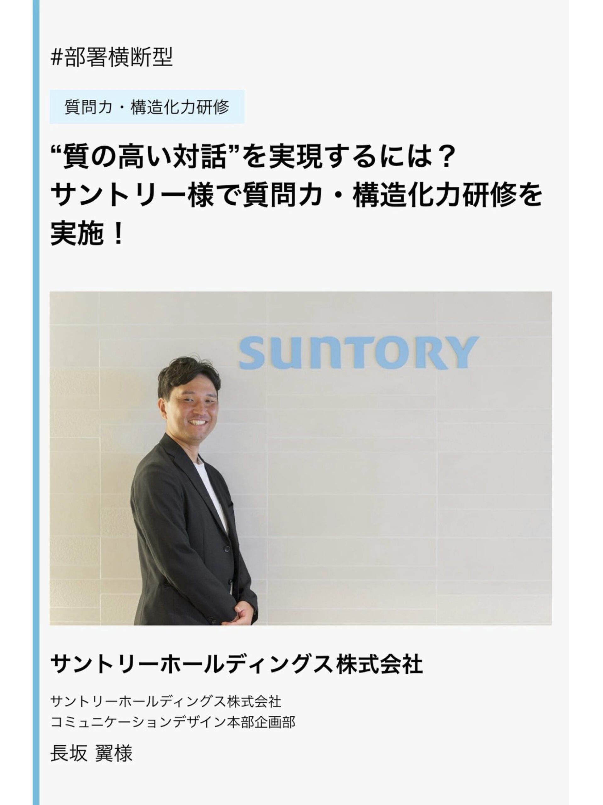 今回は、昨年サントリーホールディングス様で実施した「質問力・構造化力研修」をご紹介します。