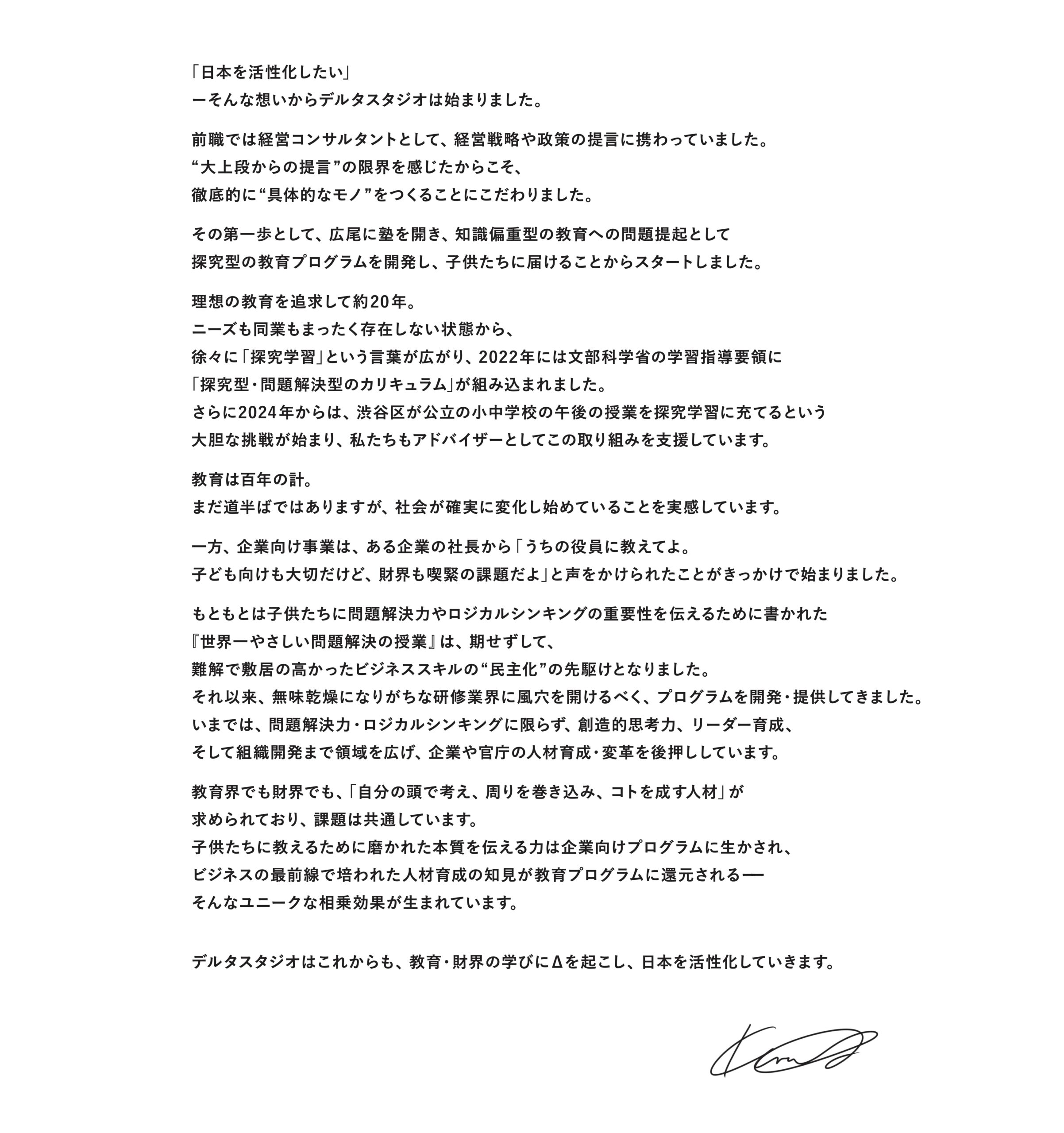 この3つのサービスをデルタスタジオの強みである「戦略・経営コンサル力 x コンテンツ開発力」を軸に提供しているということで…